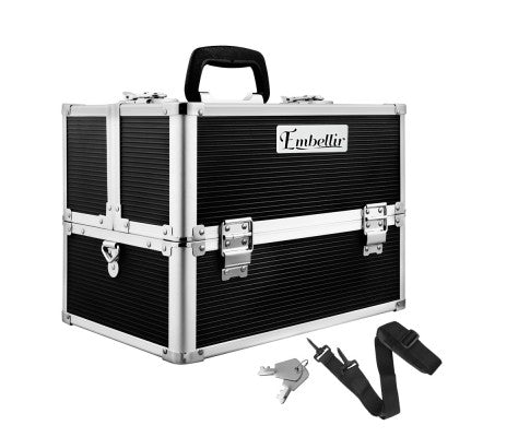 Embellir Portable Cosmetic Beauty Makeup Case with Mirror - Black
