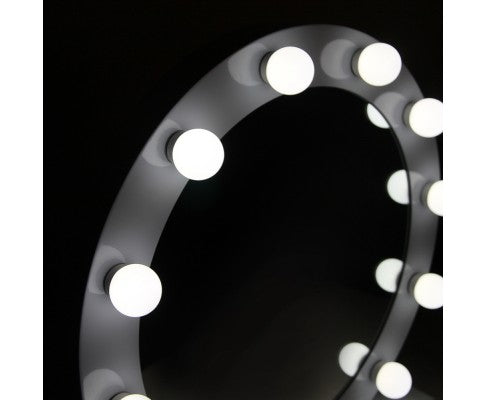 With 10 LED bulbs,the aluminium frame is sturdy and lightweight and adds a glistening touch of glamour to the entire mirror. The frame sits on an equally smooth power-coated MDF base for good stability and durability. The entire ensemble can be free standing or hung up by removing the base.