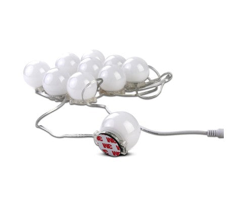 Our mirror LED lights kit features 10 easy-to-install LED lights To install, just remove the double-sided tape behind each LED light and press the light firmly on the mirror. The cable length can also be customised for various mirror sizes and excess cable can be stored under the base of the LED light. The LED lights are dimmable with five levels of brightness.