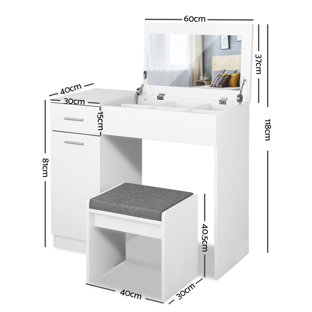 * Dressing table overall dimensions: 90cm x 40cm x 80cm