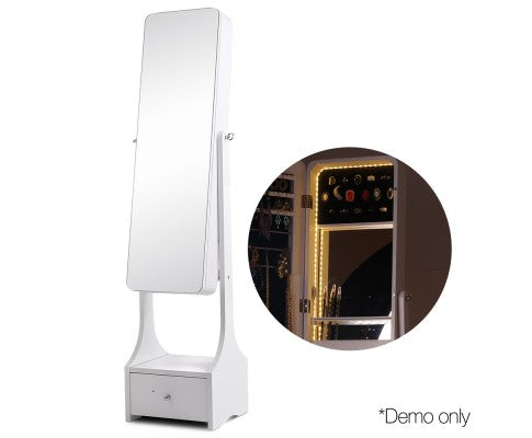 Better still, the interior also features an additional mirror bordered with LED lights for better illumination and style. It also comes with a flip-down make-up counter for convenient touch-ups and quick accessories adjustments. It's almost like your own dressing table rolled into one jewellery cabinet. Simply fascinating!